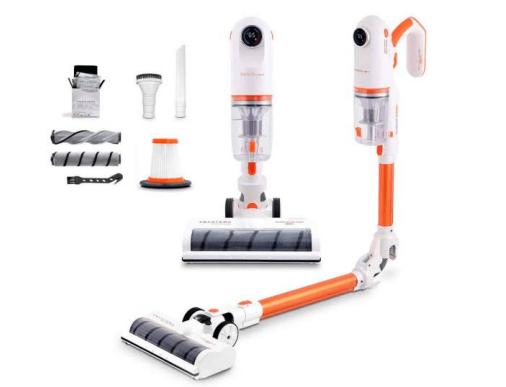 L'aspirapolvere verticale senza fili ABANTERA è un elettrodomestico dotato di 6 funzioni: spazzare, aspirare, strofinare, lucidare, disinfettare e profumare. È progettato per raggiungere ogni angolo della casa. È dotato di tecnologia UV per eliminare il 99% di germi, virus e batteri, un sistema autoprofumante con opzioni di fragranze naturali, un sistema di pulizia e lucidatura, un filtro conico HEPA, 3 modalità di funzionamento e una batteria a lunga durata.